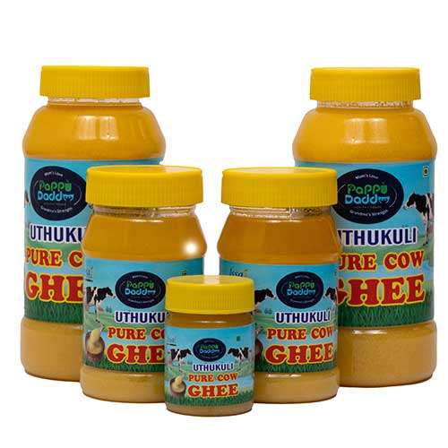 Experience tradition with PappuDaddu Uthukuli Cow Ghee! 100% pure, grass-fed, hand-churned. Homemade healthy foods, no preservatives. Rich flavor, strengthens immunity & aids digestion. Use for cooking, rice, desserts. Authentic taste of tradition!